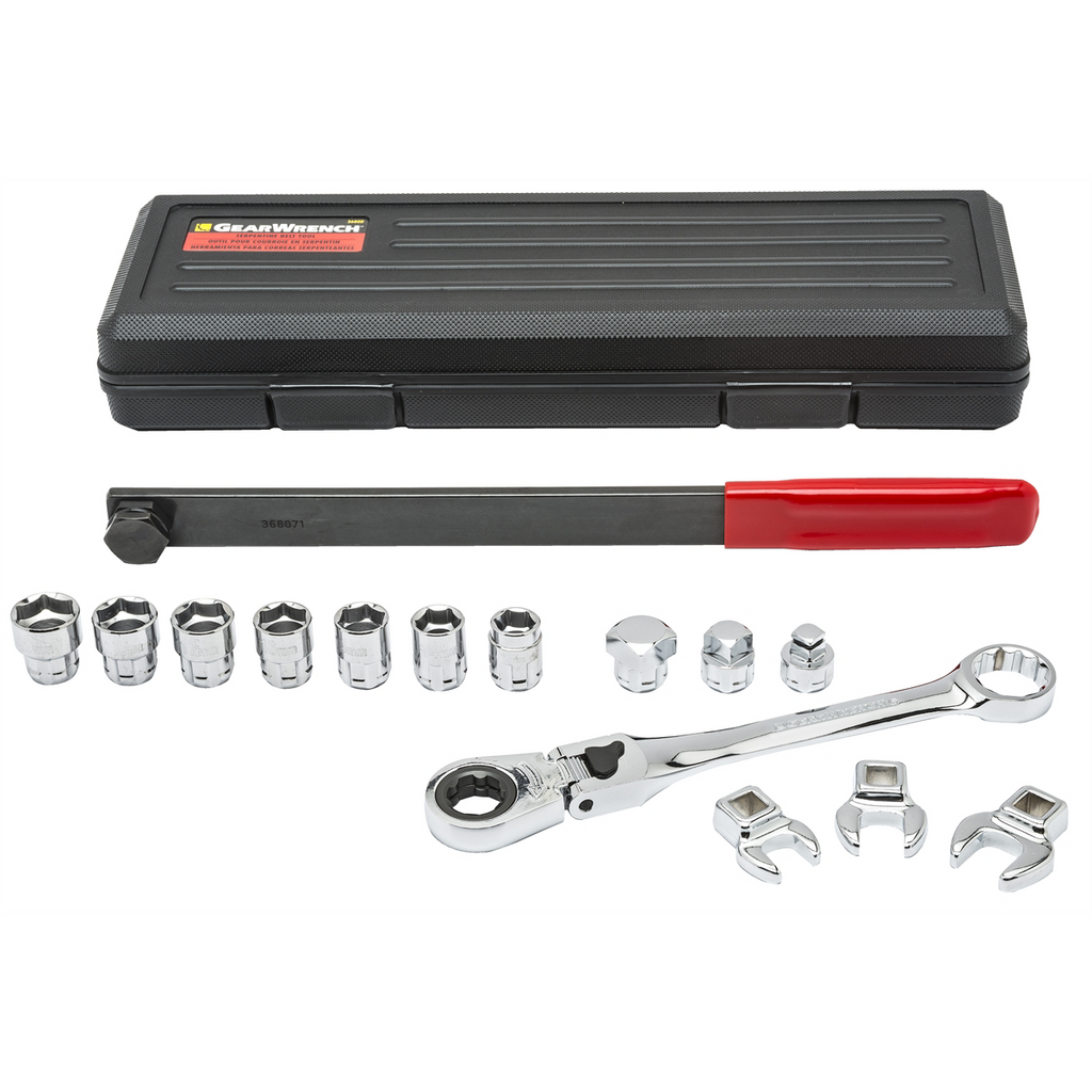 GearWrench 15 Piece Serpentine Belt Tool Set with Locking Flex Head Ratcheting Wrench